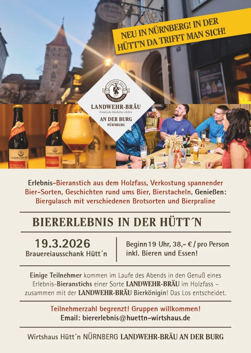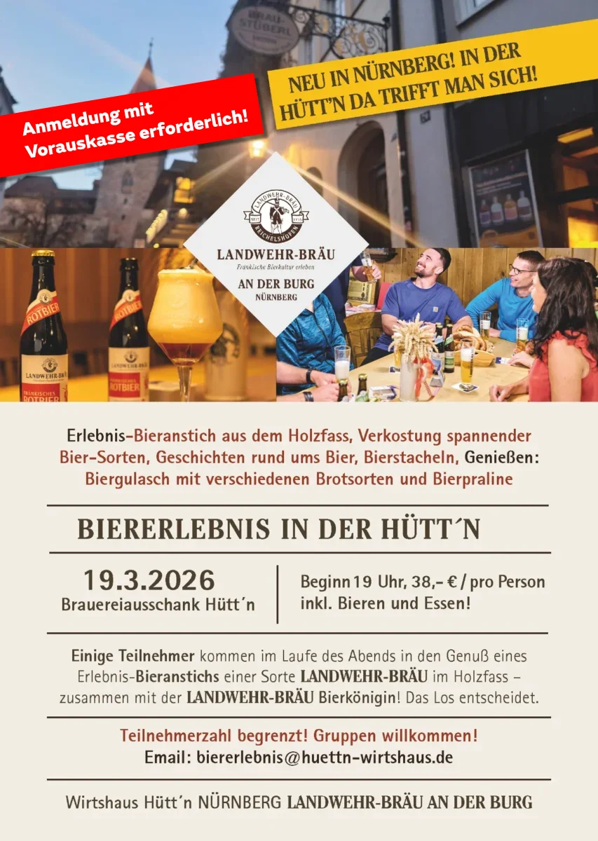 Liebe Gäste, herzlich willkommen in der Hütt´n – dem original fränkischen Wirtshaus im Herzen von Nürnberg!